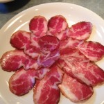 - Capocolla (or Copa): Originating in southern Italy, this thin beauty has a texture similar to prosciutto but with a much deeper red color, which is a result of the peppers and paprika used in the seasoning process. The flavor is usually delicate, but the spiciness can range from mild to hot. Our favorite versions hail from Calabria and run heavy on the peppercorn.