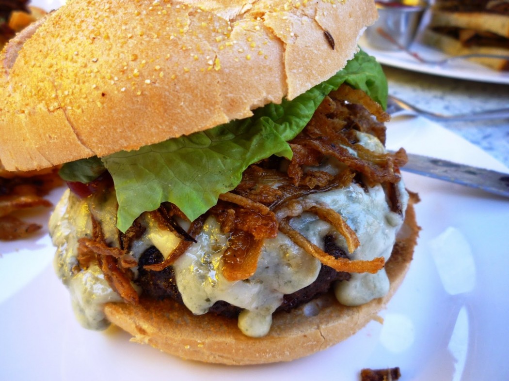 Usually, being black and blue is not a desirable thing… unless you’re talking about this burger (or the Backstreet Boys album of the same name). Fire up the griddle and pour a glass of the 2013 Fiction Red you got in your Box of Awesomeness!