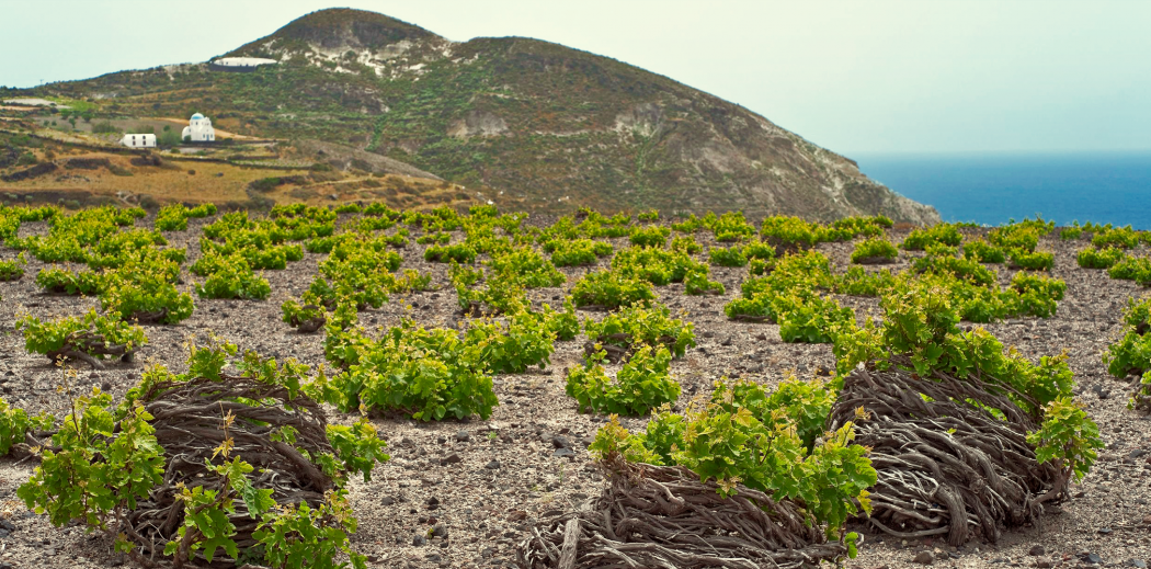The island of Santorini is one of Greece’s most well-known wine growing regions. The island was formed out of a massive volcanic eruption, and while the volcano that formed it is still technically active, it is currently in a dormant state. For us, though, this means one thing: volcanic soil! Santorini is home to more than 30 indigenous varietals, but the most popular by far is Assyrtiko, a white wine that is super high in acid and minerality and covers most of the island. The entire island, by the way, is considered one single vineyard by local winemakers. Because of the super porous soil, Santorini is one of the only regions in the world that was not devastated by Phylloxera, meaning that some of these vines are 500 years old (that’s really old for grape vines!). These vines are also unique in that they’re grown in a basket-like shape, called “kouloura,” that are designed to protect the grapes from the harsh winds and island sun.