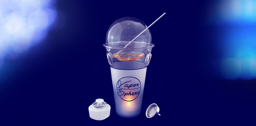 The Vapor Sphere itself is designed to resemble a basic water glass, although it’s topped with a glass sphere making it look more like something out of a sci-fi movie than a cocktail. Make sure to have a lighter or book of matches on hand because the Vapor Sphere works by heating high-proof alcoholic drinks with a candle that’s at the bottom of the glass. In the sphere at the top of the vessel, the heated liquor creates vapor, which you “drink” through a vape straw.