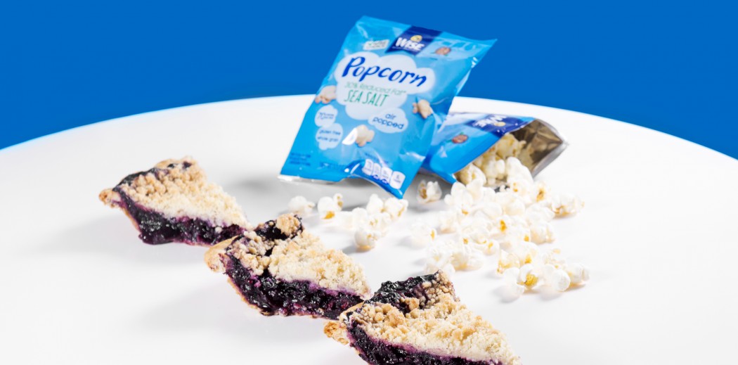 On a warm summer evening, after the grill has been cleaned and the leftover burgers stored in the fridge, the last thing you want is a hefty dessert. With a crumbly crust and tart berries, this popcorn berry crumble is the perfect way to bring the meal to a close. To make this one even better than the rest, we teamed up with our friends at Wise and threw in some of their Sea Salt Popcorn to give the crust a little extra crunch and saltiness.
