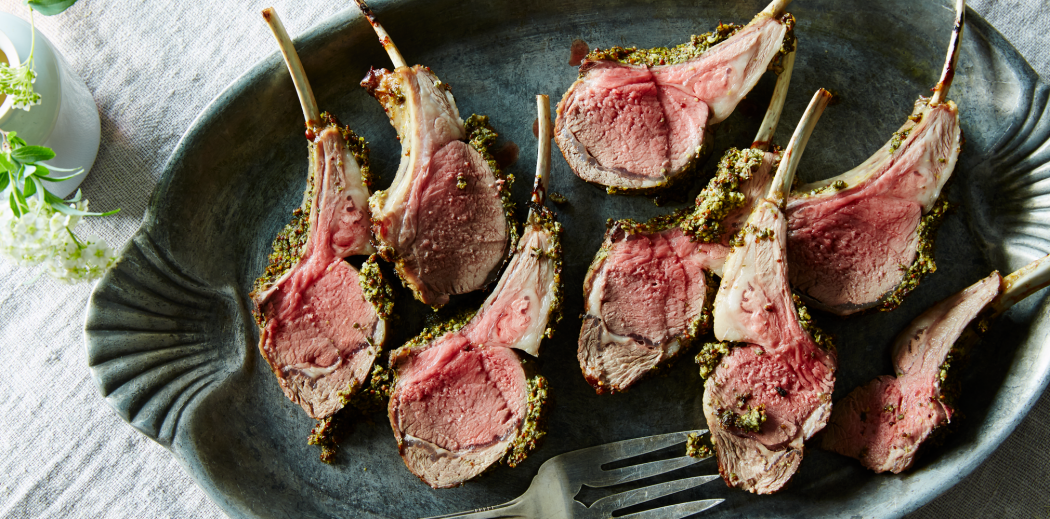 SMEAR the paste over the exterior of the lamb and place on a roasting pan. Season liberally with sea salt and roast for 15 minutes at 450° F. Turn the oven down to 325° F and cook for 30 to 40 minutes more, or until a meat thermometer registers 130 to 140° for rare to medium-rare. Let the roast rest for 15 minutes before carving and serving.