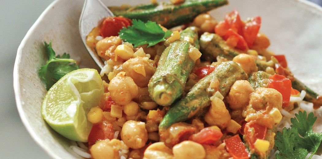 Okra, Corn, and Tomato Curry with Cilantro and Lime