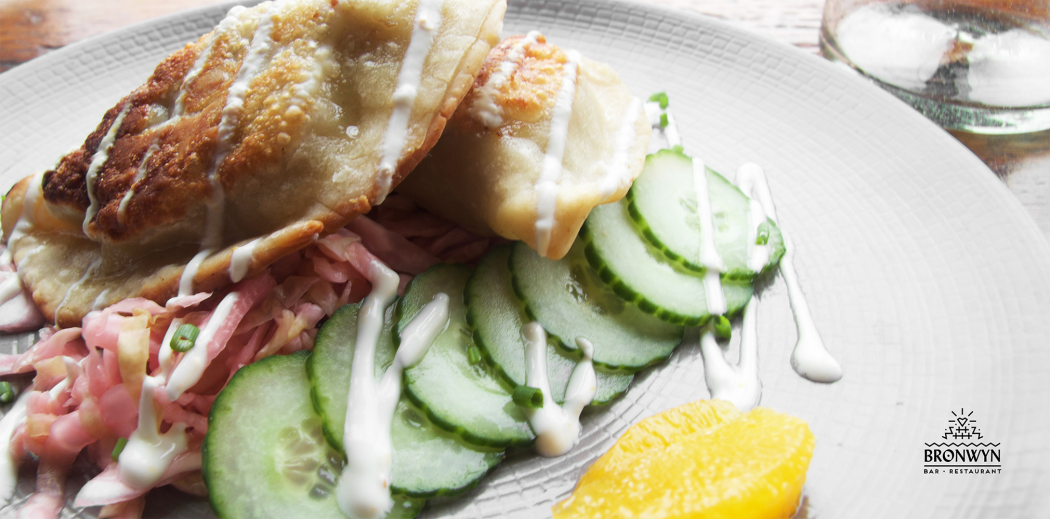 PAN FRY the pierogies in oil, the will puff and color beautifully. Spoon the yogurt over the top and serve with a side salad.