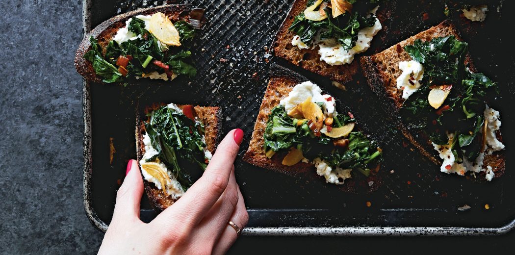 2 tablespoons extra-virgin olive oil 8 ounces greens, such as kale, Swiss chard, or collards, tough stems and central ribs removed, leaves finely chopped
