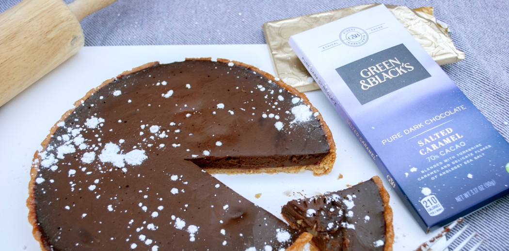 USE a double boiler to melt chopped Green & Black’s Pure Dark Chocolate Salted Caramel, cream, and half and half until glossy, for the filling. Remove from heat and add the sugar. Stir to combine.