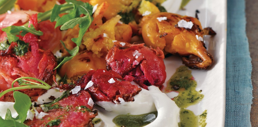 NOTE: This smashing technique works wonders on boiled unpeeled new potatoes and small Yukon Gold and fingerling potatoes, too. Serve them on their own or with Horseradish Cream and chives.