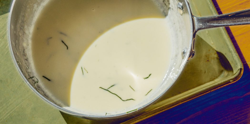 WHISK continuously until the sauce is thick like heavy cream then add the Kaffir lime and salt. Best served immediately.