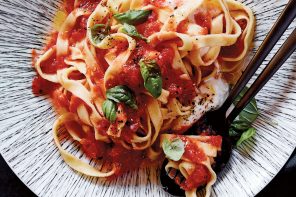 TURN OFF the heat and add half of the basil, the pine nuts, and the mozzarella. Add the lemon juice to taste and stir well to incorporate it. Scoop the penne into individual shallow bowls, making sure to evenly distribute the zucchini and corn. Top with the remaining basil, a fresh shaving of parmesan, and a drizzle of your best extra-virgin olive oil. Serve with lemon wedges if you wish.
