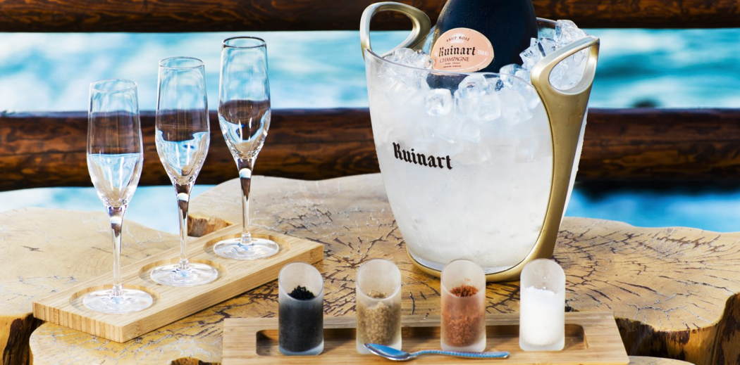 But why salt? According to Jose Aguirre, the resort’s sommelier, salt makes the mineral and fruit components of the Champagne much more obvious – he compares it to pairing bubbly with other (more mainstream) savory foods, like caviar and oysters.